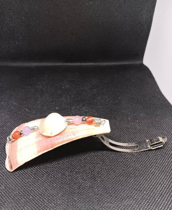 En coquille Saint Jacques, améthyste, agate rouge, hématite